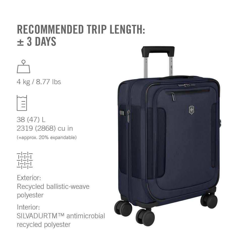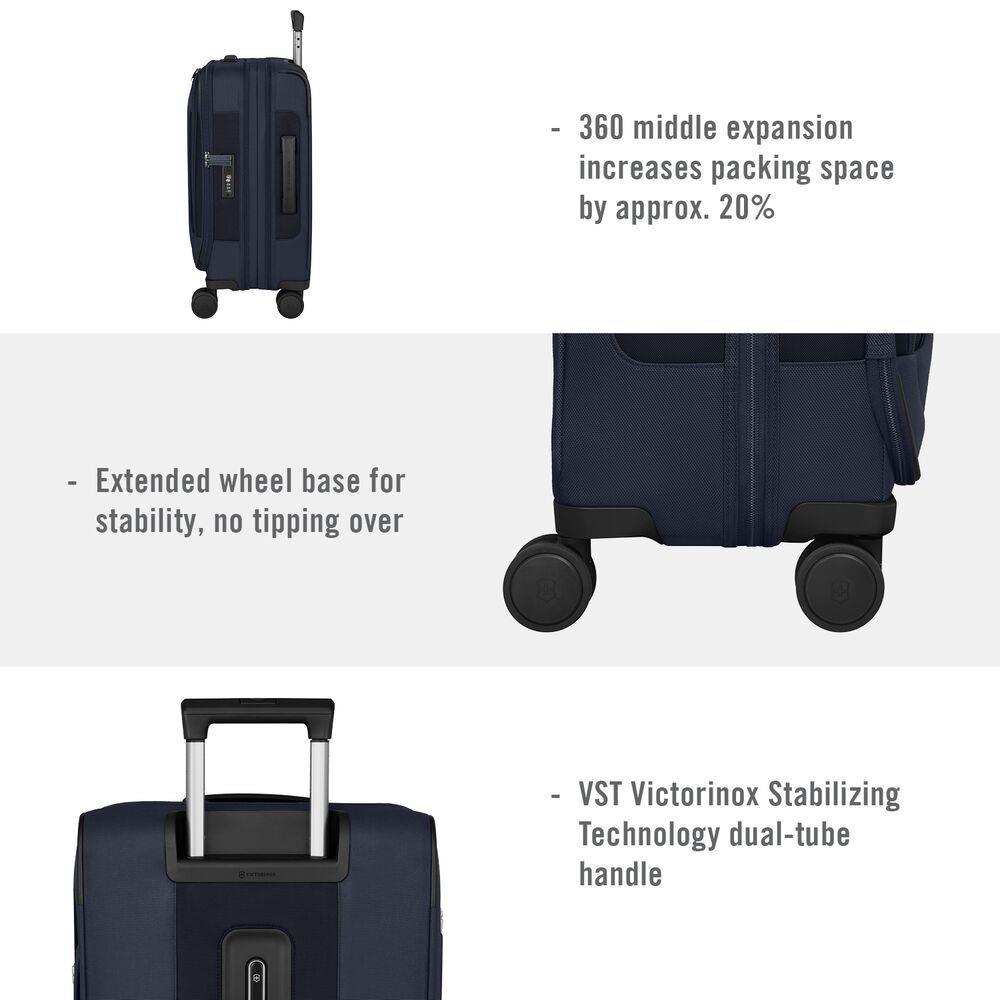 Bagaż ten zapewnia doskonałe uporządkowanie akcesoriów biznesowych oraz zabezpieczenie niezbędnych urządzeń elektronicznych w komorze z podszewką zapobiegającą zarysowaniom. Ponadto walizka została wyposażona w system rączki teleskopowej VST Victorinox Stabilizing Technology, który zapewnia pełną kontrolę nad walizką i komfort użytkowania w podróży.