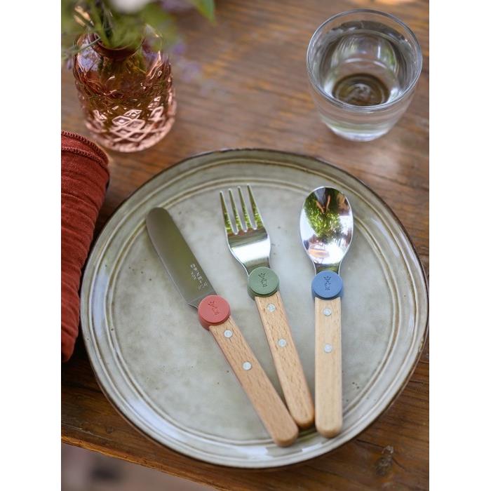 Zestaw sztućców dla dzieci Opinel z kolekcji Le Petit Gourmet w kolorze koral.