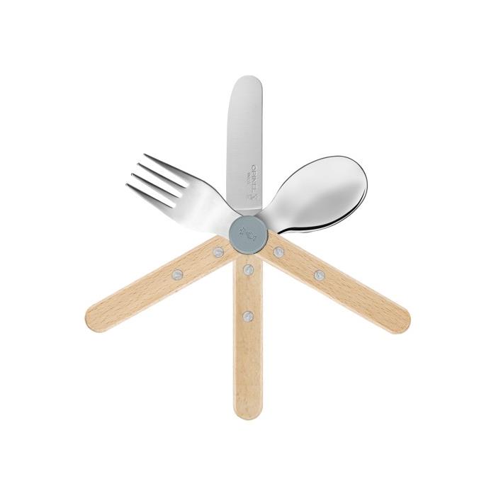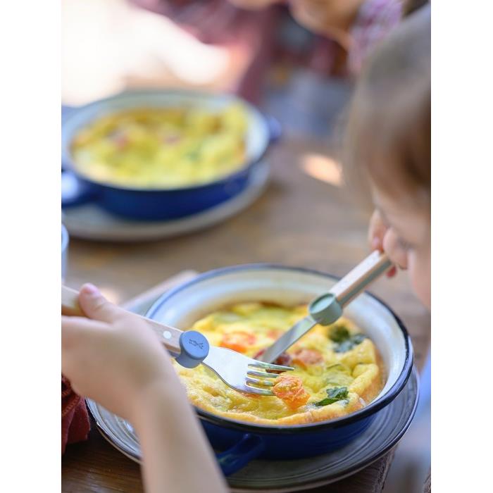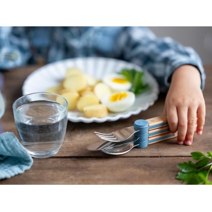 Zestaw sztućców dla dzieci Opinel z kolekcji Le Petit Gourmet w kolorze niebieskim.